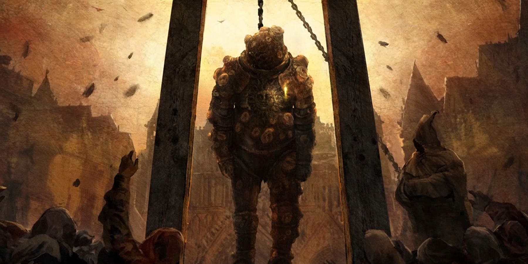 A Gideon se le ve debidamente enterrado, Goldmask parece tener una bebida derramada a mano que sugiere juego sucio, y Hoarah Loux ha sido colgado tras caer en batalla. Aunque algunos de estos Tarnished fueron asesinados, ninguno fue linchado como el Dung Eater, que fue colgado en medio de la plaza del pueblo. Aunque la mayoría se distraerá con su cómico nombre, ya hay indicios de que este individuo merece un odio especial.