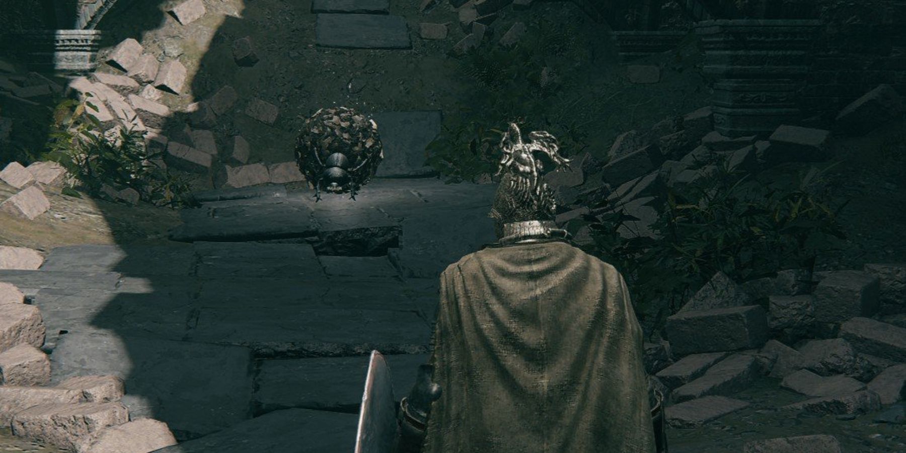Una de las criaturas más raras que se pueden encontrar en el mundo abierto son los escarabajos lágrima y las bolas que hacen rodar constantemente. Al igual que los lagartos de cristal de la serie Souls, estos escarabajos suelen contener valiosos tesoros que pueden ser reclamados por los jugadores si los matan a tiempo. El «a tiempo» es fundamental, ya que si no se les mata rápidamente, los escarabajos desaparecerán, desvaneciéndose en el aire y, por lo general, llevándose el preciado anillo de Elden Cenizas de Guerra.