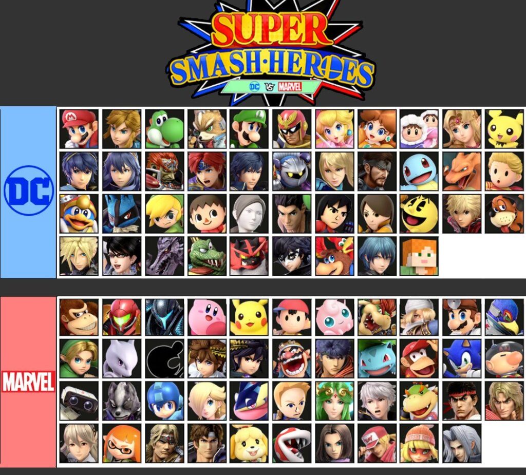 Un fan de Super Smash Bros. se propone dibujar a todos los luchadores de Ultimate, incluido el DLC, basándose en superhéroes de los universos Marvel y DC Comics’.