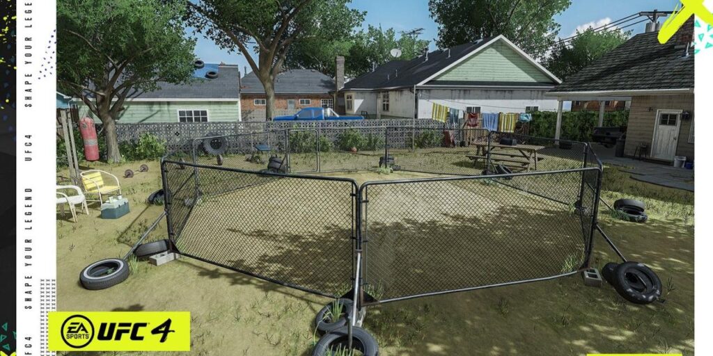 Los jugadores pueden practicar sus ; EA Sports UFC 4 habilidades de lucha en una variedad de entornos diferentes.Además de las arenas estándar, el juego también incluye el Kumite, que es una ; arena al estilo Bloodsport que desprende serias ; vibraciones de Mortal Kombat , así como el Backyard, que, como su nombre indica, es una jaula instalada en un patio trasero.