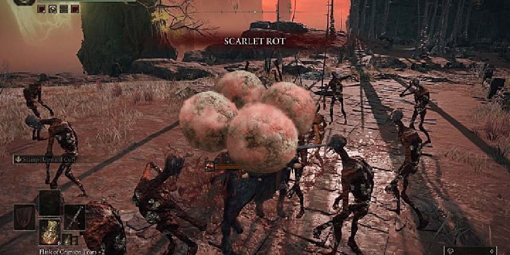 Podría decirse que el efecto de estado más frecuente en Elden Ring es el de la Pudrición Escarlata, especialmente en la región de Caelid de Lands Between. Y para empeorar las cosas, muchas de las zonas ocultas (como el Lago de la Pudrición) están muy cubiertas de Pudrición Escarlata.
