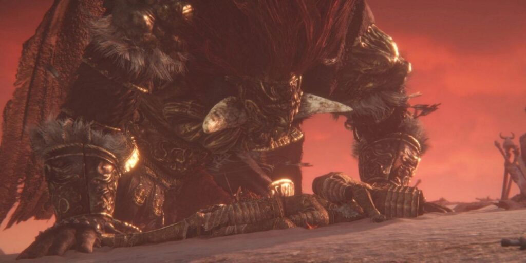 En una nota más ligera, aquí’ hay alguien dispuesto a salir en un resplandor de gloria a pesar de su condición debilitante y de ser zombificado debido a la Pudrición Escarlata. Los hombres del general Radahn lo conocían bien y lo respetaban lo suficiente como para convertir la ceremonia de su muerte en una celebración. Porque eso significa que se liberará de su aflicción y que quien lo derrote será un digno aspirante al trono. Dos pájaros de un tiro.