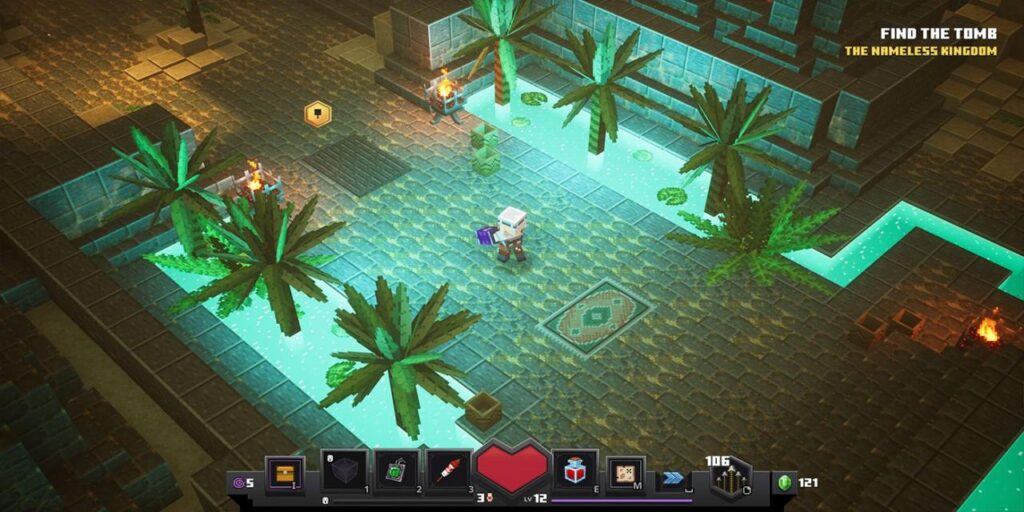 Los zombis marchan lentamente hacia los jugadores con la misma determinación que en el estándar ; Minecraft , ; los animales inocentes se encuentran atrapados en el fuego cruzado de las batallas, y la historia ciertamente delgada añade un poco más de profundidad a la franquicia. Mazmorras ; está en su punto álgido cuando juega con los tropos de Minecraft’s ; , haciendo que los jugadores se sientan como en una gran aventura, aunque la primera partida sólo tardará unas horas en completarse.