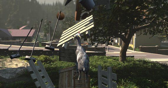 La idea general de Goat Simulator es sencilla: los jugadores toman el control de una cabra en un pequeño pueblo de las afueras y tienen libertad para hacer lo que quieran. Esta cabra puede saltar, lamer, hacer piruetas, dar cabezazos, esprintar y, por supuesto, berrear, pero tampoco es un espécimen corriente; en realidad es un poco imbécil.