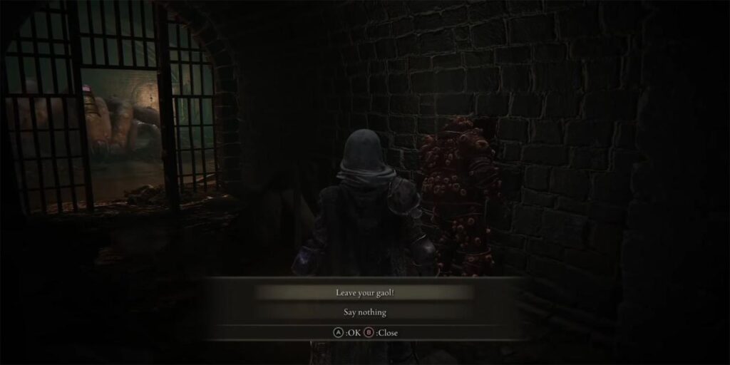 En este punto, los jugadores deben bajar por el pozo de Leyndell y dirigirse a los Terrenos de Asalto Subterráneos. La ubicación exacta de su celda se describe en esta guía de la misión completa de Dung Eater. Después de encontrar su celda y abrirla, habla con el Devorador de estiércol y dile que es libre.