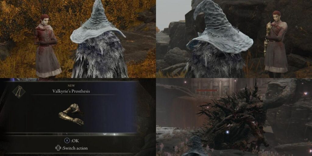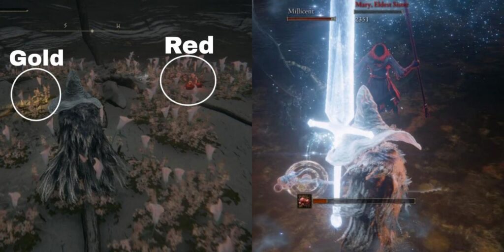 Por otro lado, si los jugadores deciden ayudar a las hermanas de Millicent, serán invocadas como Invasores para matar a Millicent. Cuando el combate haya terminado, dirígete a la Choza de Gowry’s, donde te espera su cadáver con el Talismán de Lienzo del Rebaño’s y el Soporte de Campana de Gowry’s.