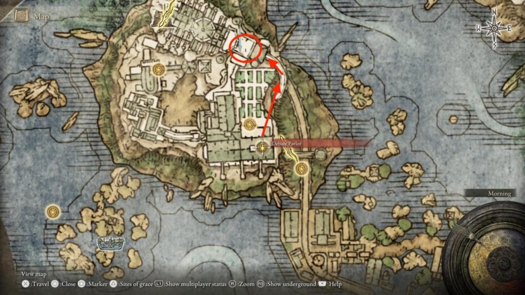 Para que el camino hacia Elden Ring’s Glintstone Scarab sea lo más sencillo posible, los jugadores deberían empezar en el Lugar de Debate de Lost Grace, el mismo lugar donde los jugadores luchan contra el jefe conocido como el Lobo Rojo de Radagon.