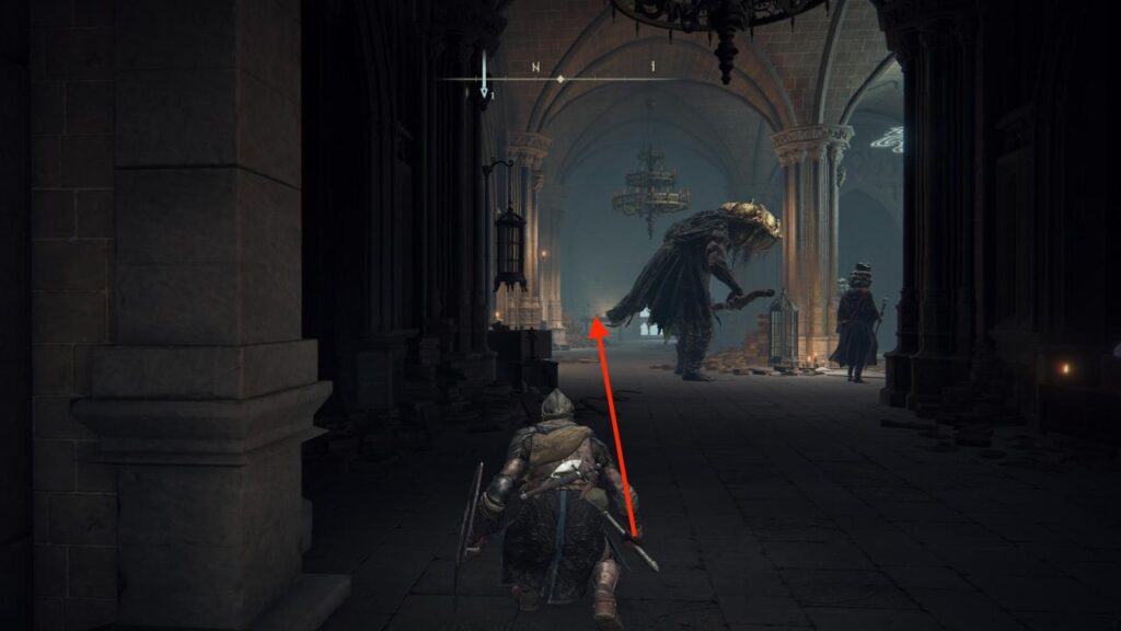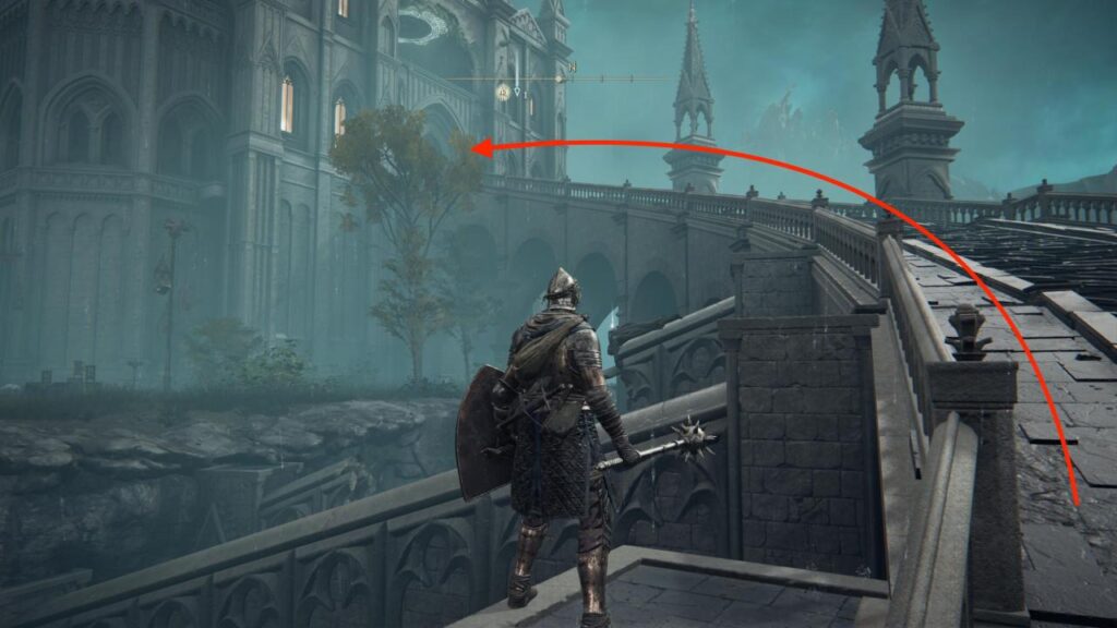 - Desde la sección en la que se encuentra el caballero, dirígete al sur por la puerta, y luego haz un giro brusco a la izquierda para saltar al lado del edificio y llegar a una zona diferente.