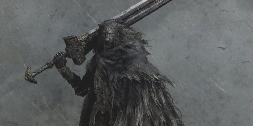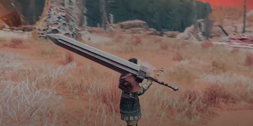 No se puede hacer un cosplay de Guts sin su arma característica, que es la espada del Matadragones. Lo más parecido a ella en Elden Ring es la poderosa Greatsword, que es una espada colosal que escala la fuerza (asegúrate de cumplir el requisito de 31 de fuerza y 12 de destreza).