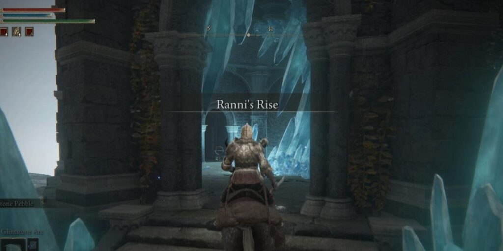 - Lleva la Cuchilla Cazadedos a Ranni en Ranni’s Rise. Desaparecerá y desbloqueará la subida de Renna. Dirígete a Renna’s Rise (la torre más al norte de las Tres Hermanas) y ve al portal de la parte superior.