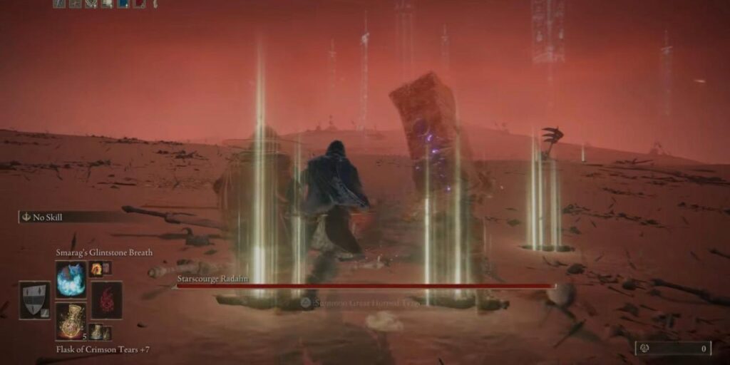 El combate de Radahn’s comenzará en cuanto los jugadores atraviesen el portal de la playa bajo el Castillo de Redmane (al que se accede por un ascensor al que se accede una vez que se habla con el anunciador).