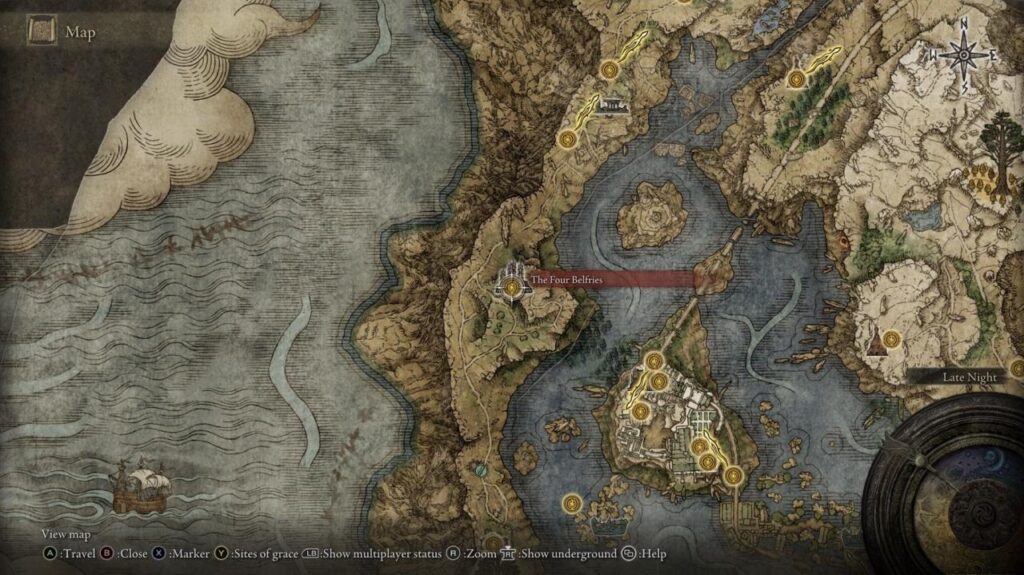 Antes de regresar a Nepheli, los jugadores también deben buscar a Kenneth Haight en Limgrave (ubicación marcada con un círculo en el mapa de arriba) y hablar con él para comenzar su misión.