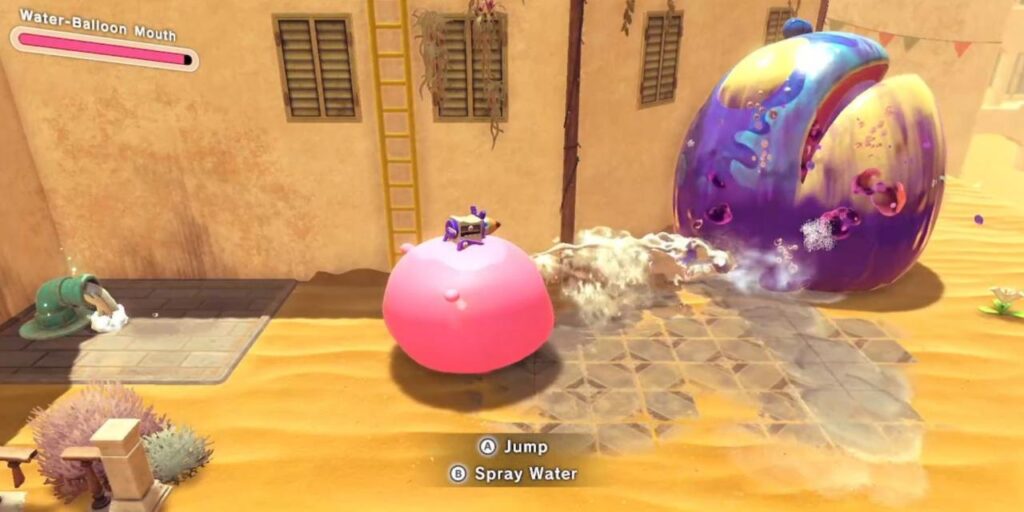 Los jugadores aún no han terminado con el Kirby boca de globo de agua, ya que tendrán que usar la habilidad Taladro para elevar el grifo de antes y usarlo de nuevo en el estiércol que rodea el siguiente camino que deben tomar. Si limpian el estiércol venenoso que se encuentra en el lado derecho, descubrirán una cápsula de juguete.