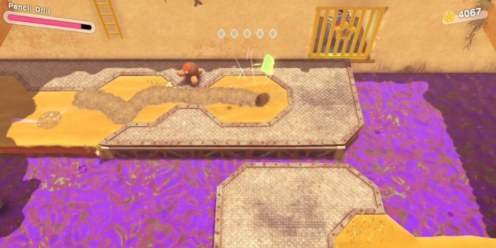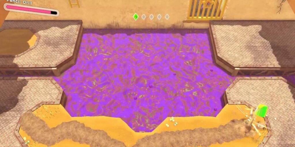 Después de derrotar al Croakom Venenoso, los jugadores deben aferrarse a la forma del Modo Bocazas en la que’ están para limpiar la mugre que hay frente a la valla del taladro, y luego usar la Habilidad de Copia del Taladro para entrar en la sala secreta.