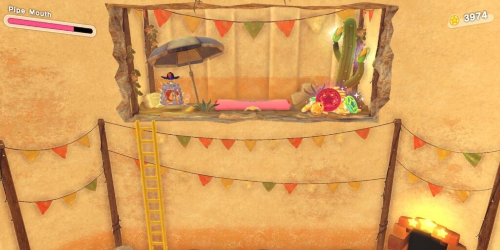 Seguir las plataformas móviles llevará a los jugadores a un objeto que pueden inhalar para convertirse en Kirby Boca de Cúpula. Al usar la habilidad se descubrirá un camino secreto que lleva a una tubería que se puede usar para convertirse en Kirby Boca de Tubo. Habrá un sendero en el que los jugadores podrán usar la forma del modo Boca de Tubo, que requiere que se calculen los saltos para llegar al otro lado. Si los jugadores cronometran el último salto correctamente, destruirán un muro al final y serán recompensados con un Waddle Dee oculto.