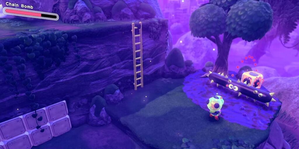 2 – Debajo del tronco hay un Bloque Bomba que Kirby y los jugadores de Tierra Olvidada deben golpear.